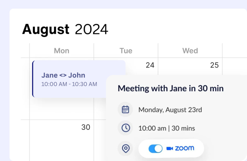 Connect Google or Outlook Calendar to stay in control of your availability — and never get double-booked again.