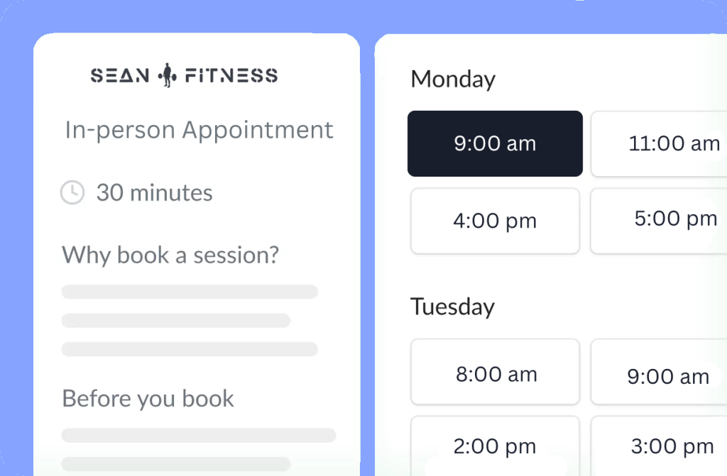 Enable PayPal or Stripe for paid bookings, deposits, or sessions — and get paid directly through your branded booking page.